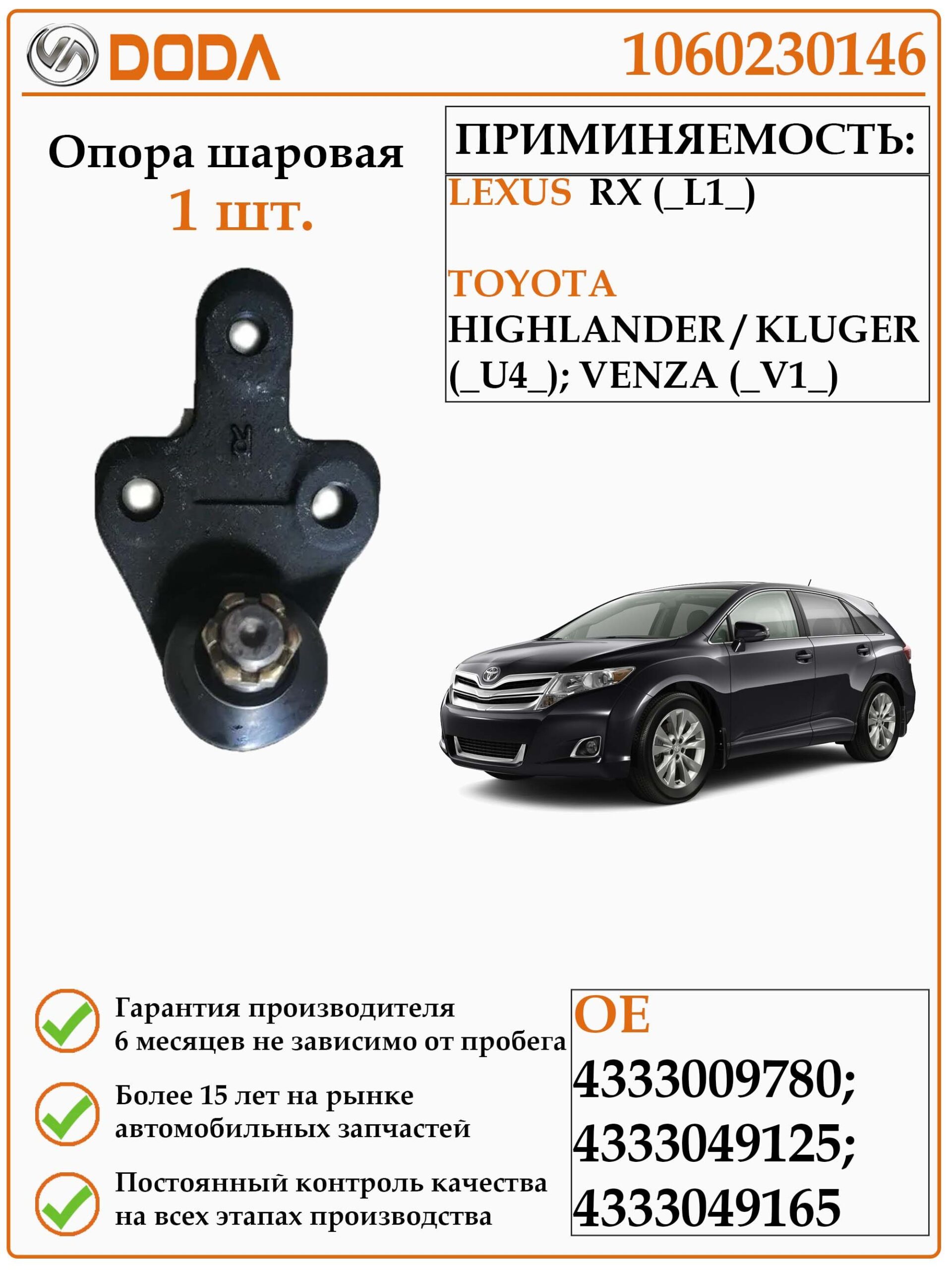 DODAОпора шаровая перед. ниж. прав. Lexus RX (_L1_, _L2_) 08-, Toyota Highlander (U40) 07-, Sienna (L30) 10-, Venza (V10) 08-