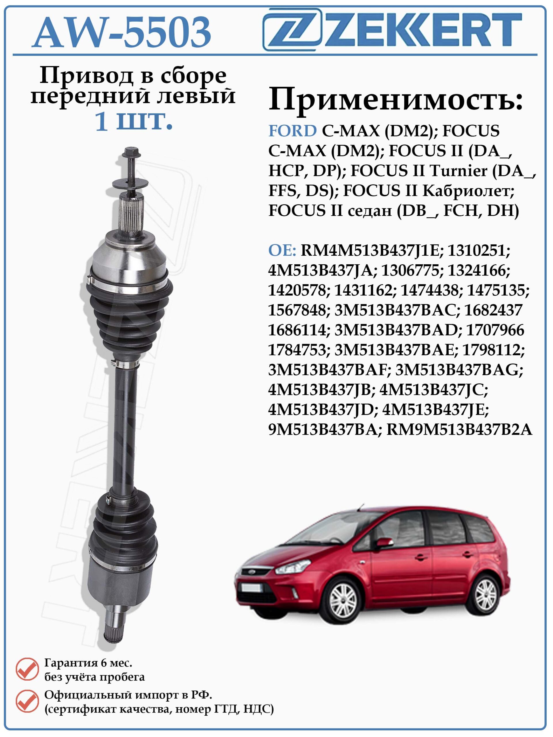 Привод передний левый в сборе ZEKKERT AW-5503 для Форд Фокус второго поколения, Форд C-MAX