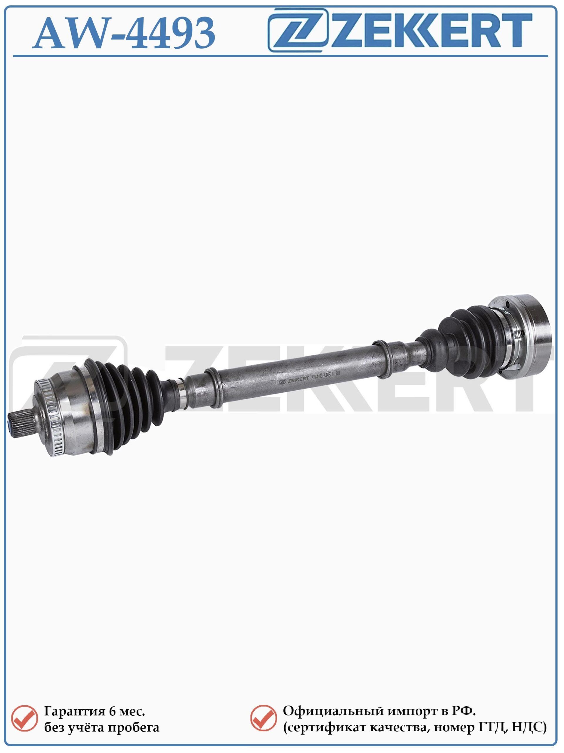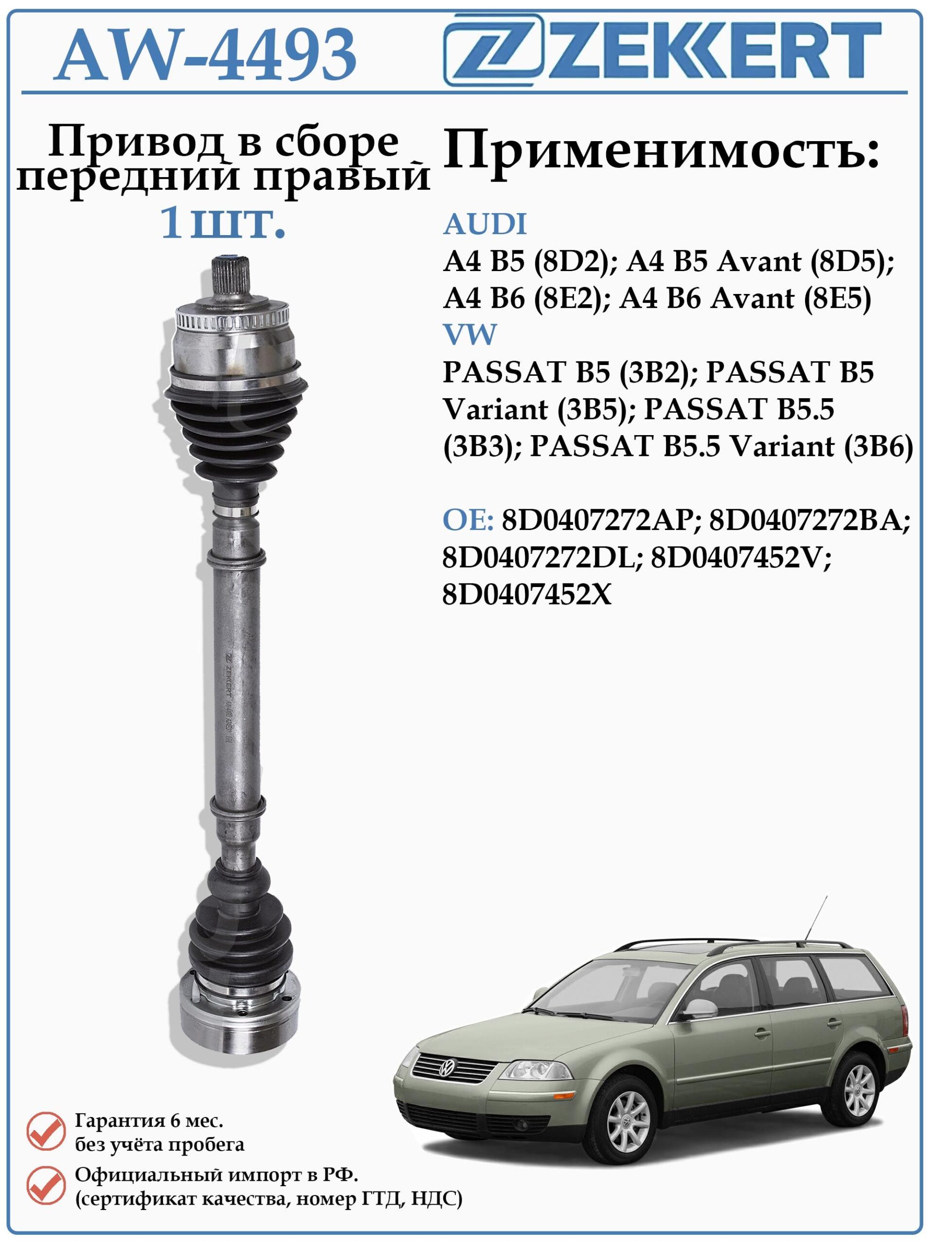 Привод передний правый в сборе ZEKKERT AW-4493 для Ауди А4, Фольксваген Пассат Б5 (МКПП)
