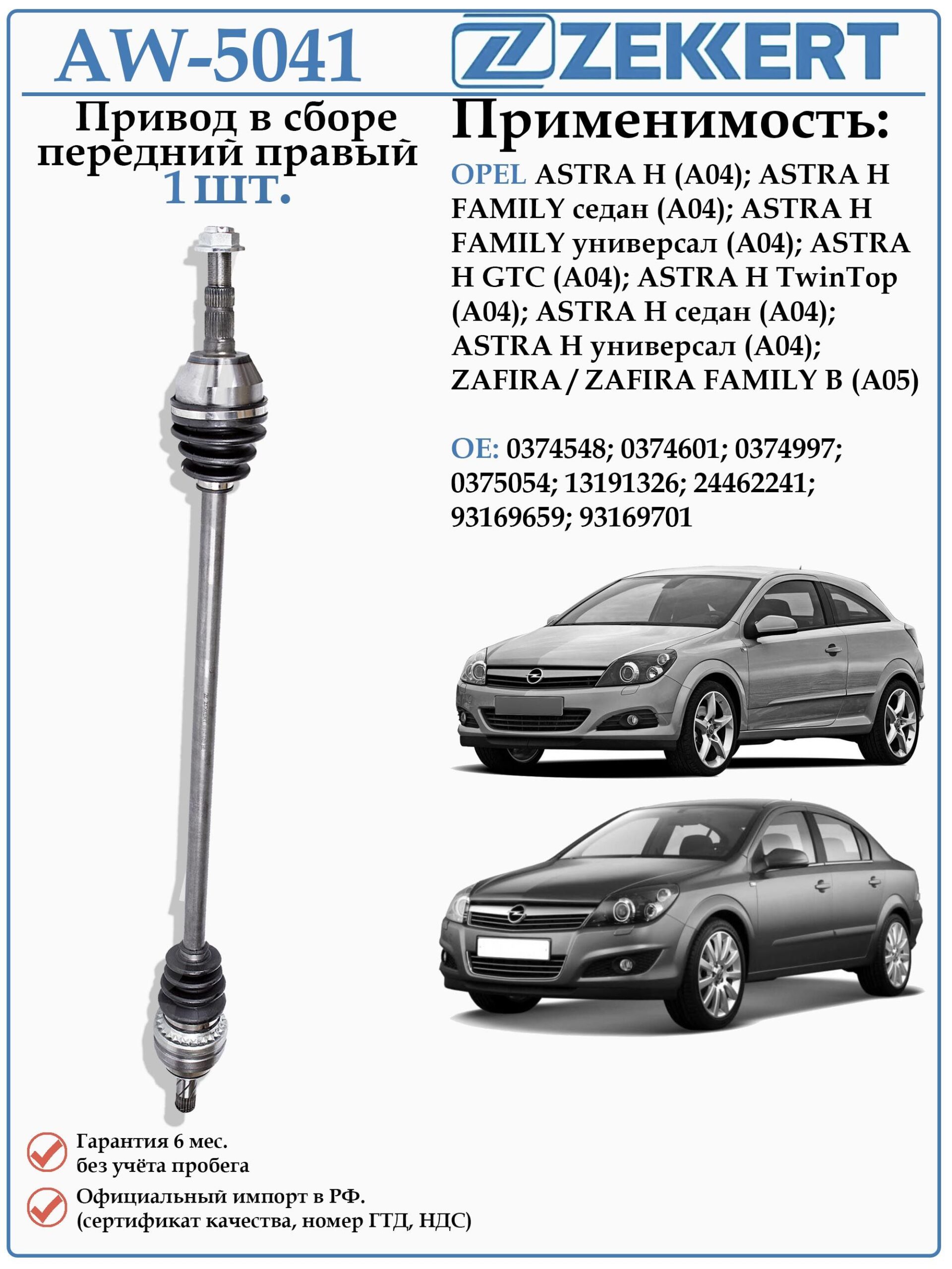 Привод передний правый в сборе ZEKKERT AW-5512 для Опель Астра H