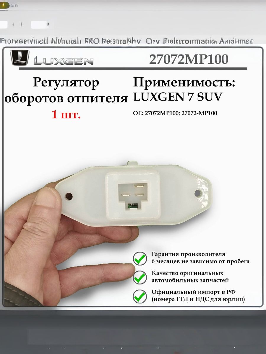 Регулятор оборотов отопителя, также известный как реостат отопителя, предназначен для модели LUXGEN (лаксджен, люксген) 7 SUV. Эта качественная запчасть обеспечит надежное управление скоростью работы отопителя вашего автомобиля, позволяя создавать комфортные условия в салоне при любых погодных условиях.