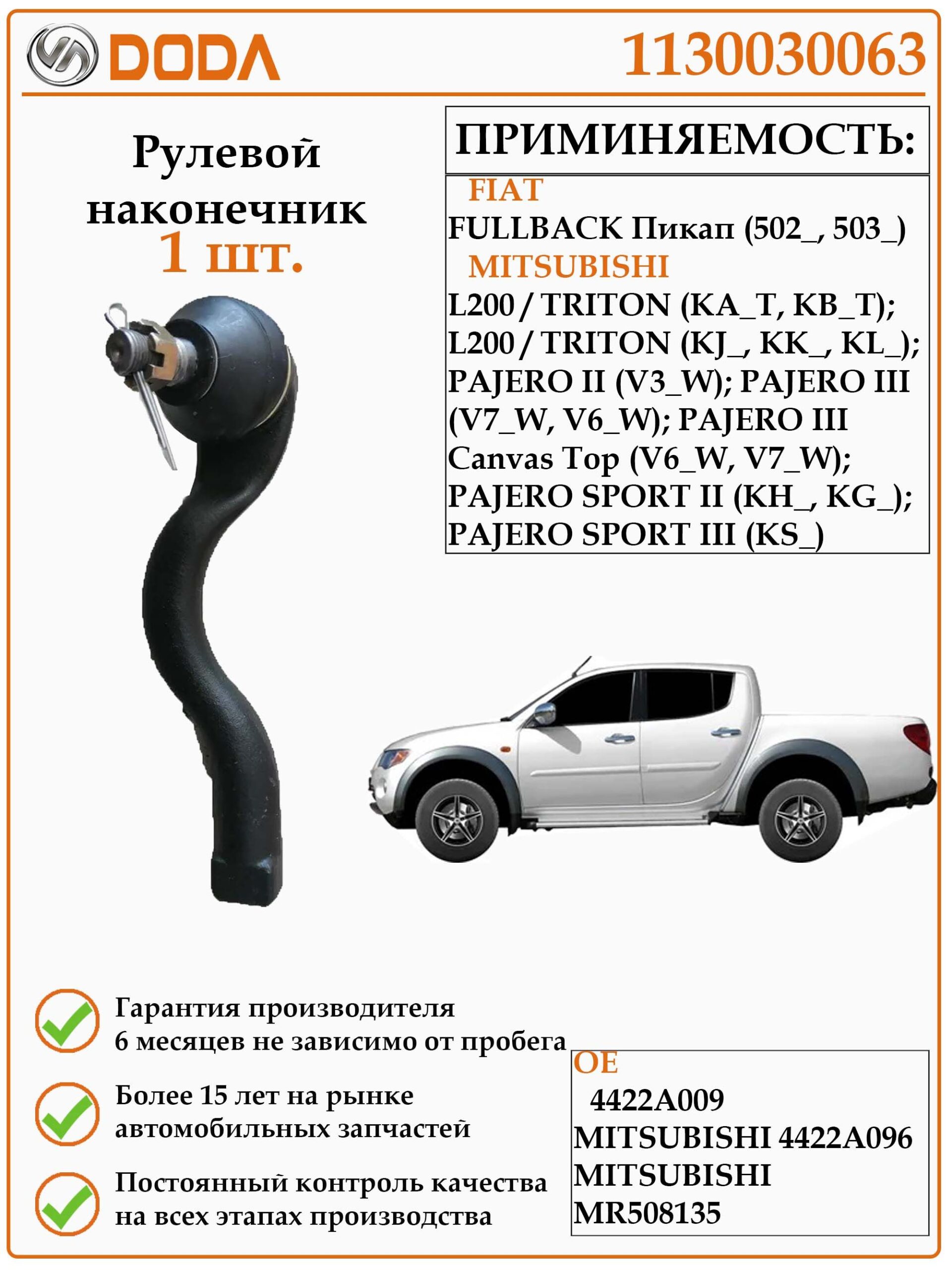Наконечник рулевой тяги левый MITSUBISHI Pajero 2.5D-3.5 00-06 / L200(KB4T) 2.5D 05- (1130030063)