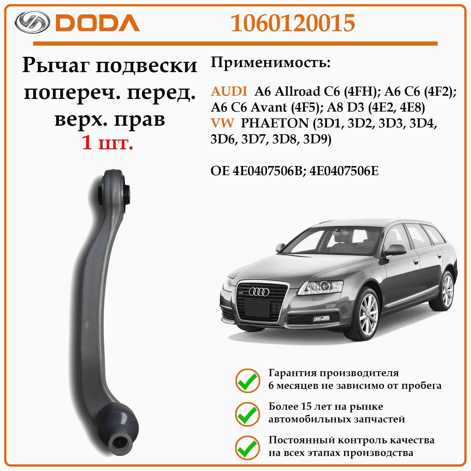 Рычаг подвески поперечный передний верхний правый DODA 1060120015 — это надежная запчасть, предназначенная для автомобилей VW Phaeton и Audi A6. Этот элемент подвески отвечает за поддержание устойчивости вашего автомобиля и обеспечивает плавность хода, что делает его незаменимым при ремонте или замене деталей вашего транспортного средства.