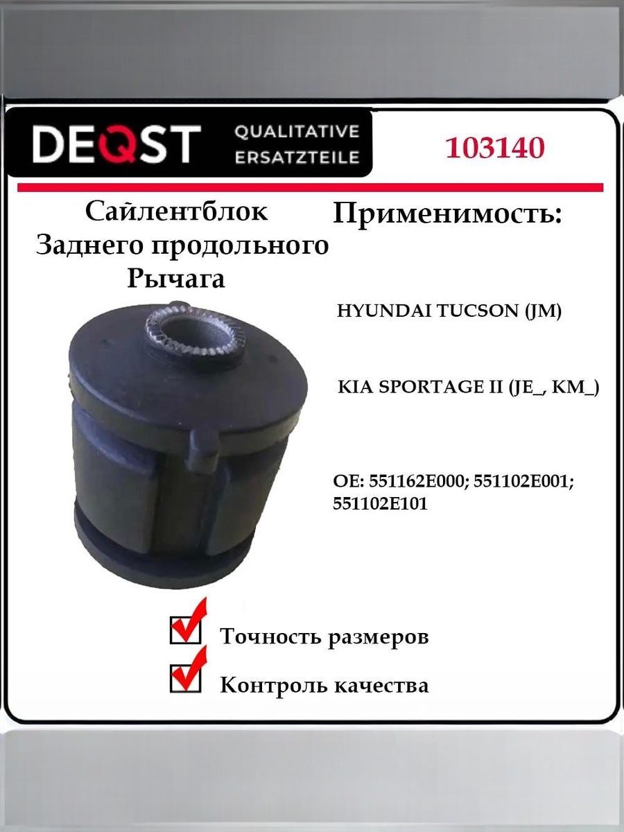 Сайлентблок от Deqst — это высококачественная автозапчасть, предназначенная для надежной и долговечной эксплуатации вашего автомобиля. Сайлентблоки играют ключевую роль в системе подвески, обеспечивая плавность хода и минимизируя вибрации и шумы. Если вы ищете надежный и долговечный сайлентблок, то продукция Deqst – идеальный выбор для вас.
