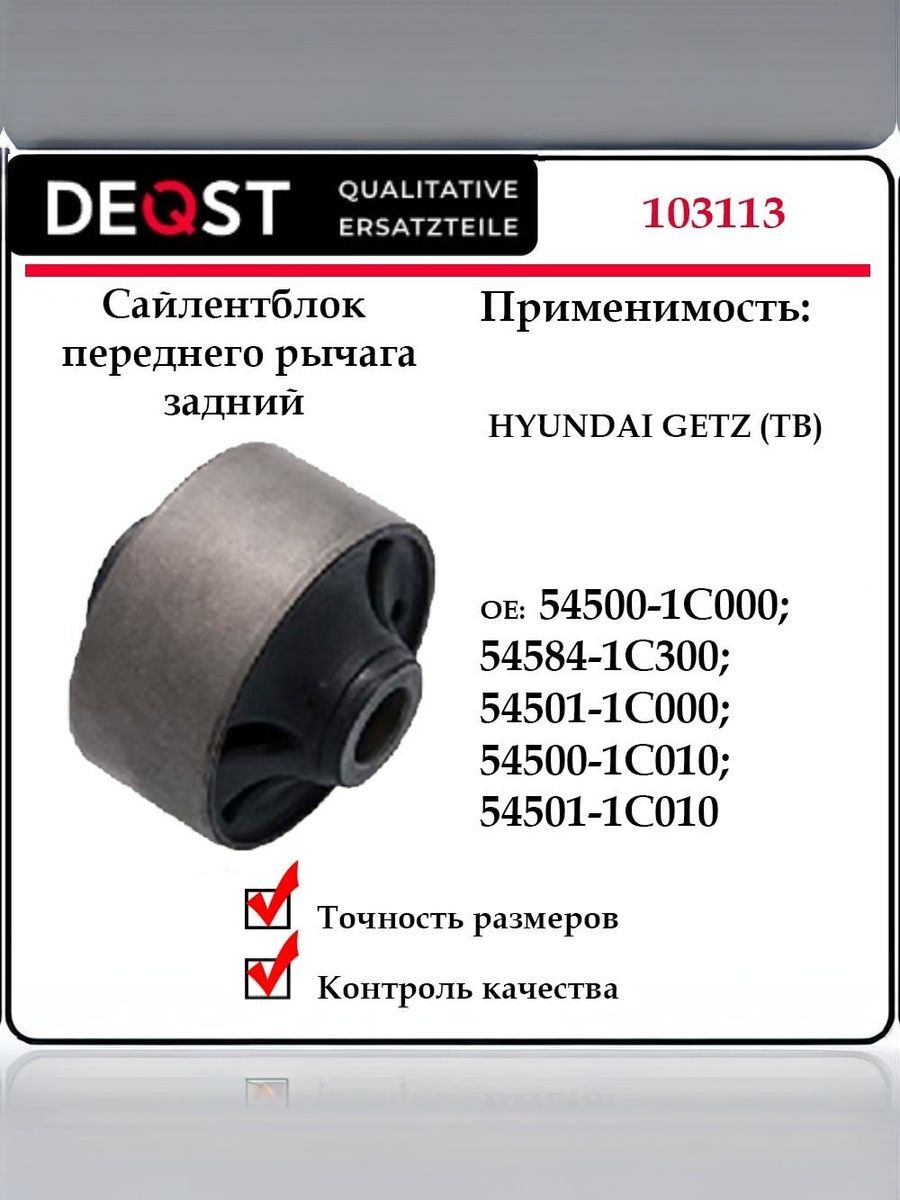 Продукты марки Deqst всегда соответствуют высоким стандартам качества и проходят строгий контроль на всех этапах производства. Благодаря точности изготовления, сайлентблок идеально подходит для замены старых или изношенных деталей, обеспечивая безопасность и комфорт при вождении.