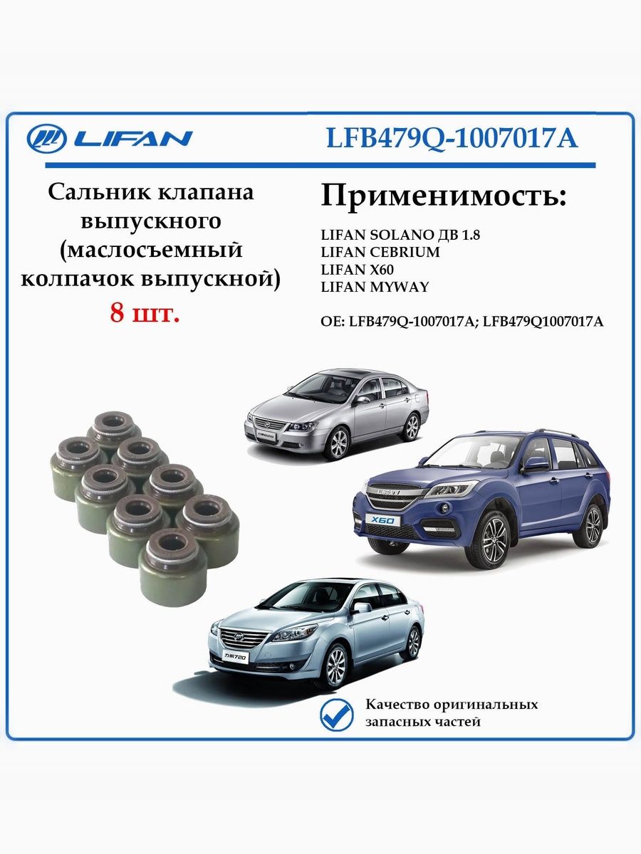 Комплект из восьми маслосъемных колпачков выпускных клапанов для моделей Лифан Солано (620) с двигателем 1.8 л. , Себриум, Х60 и Майвэй.