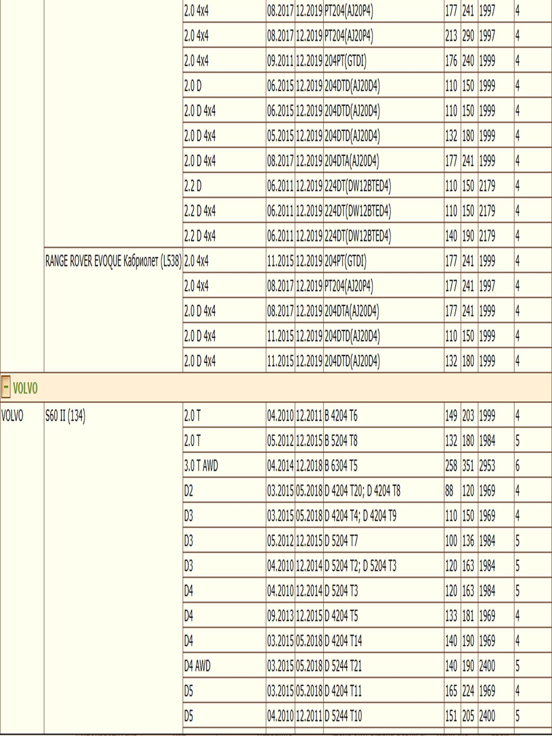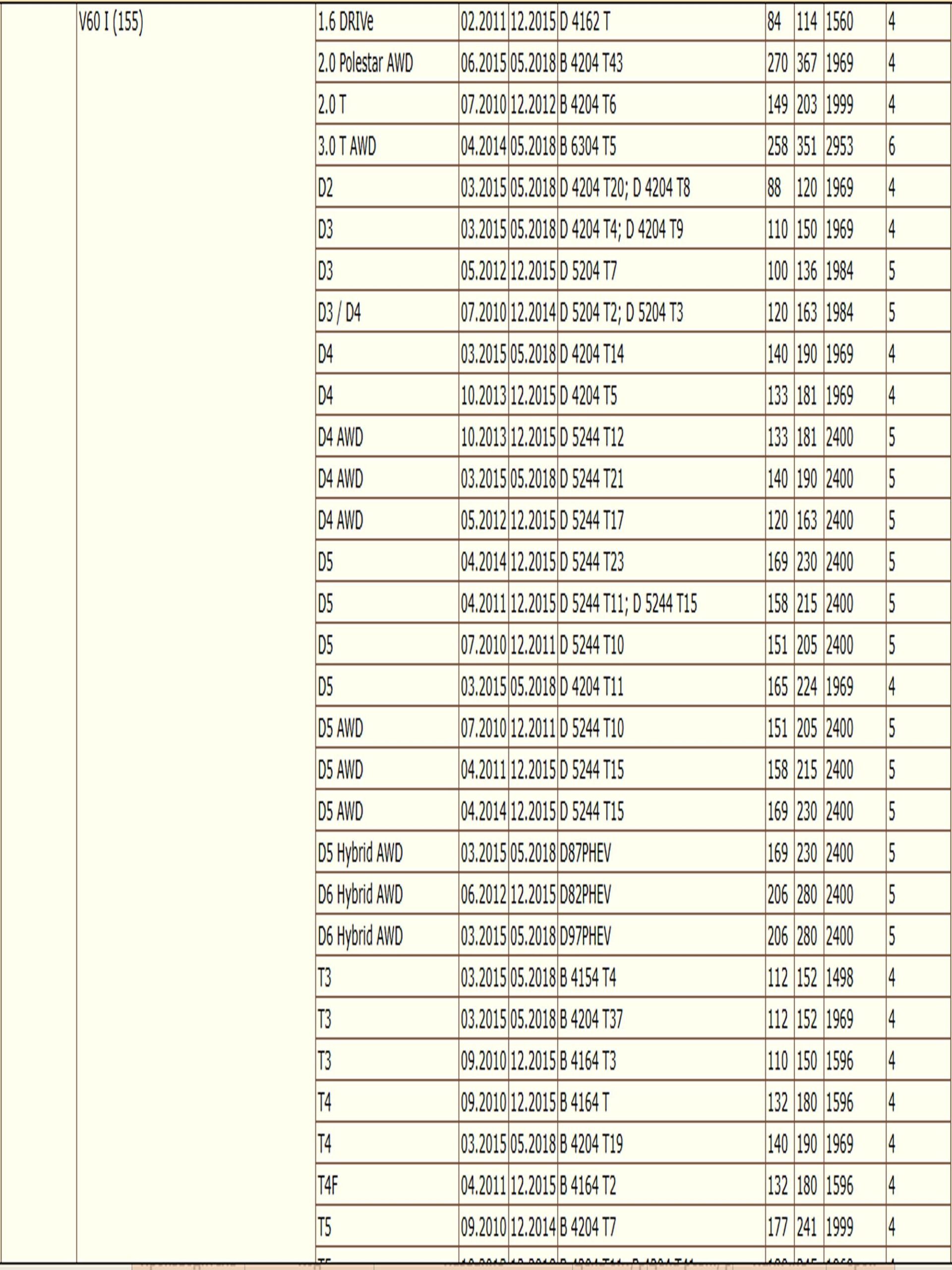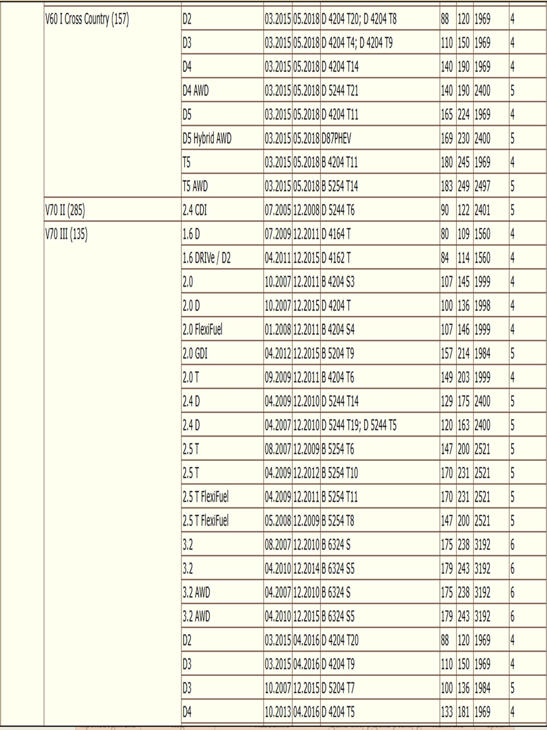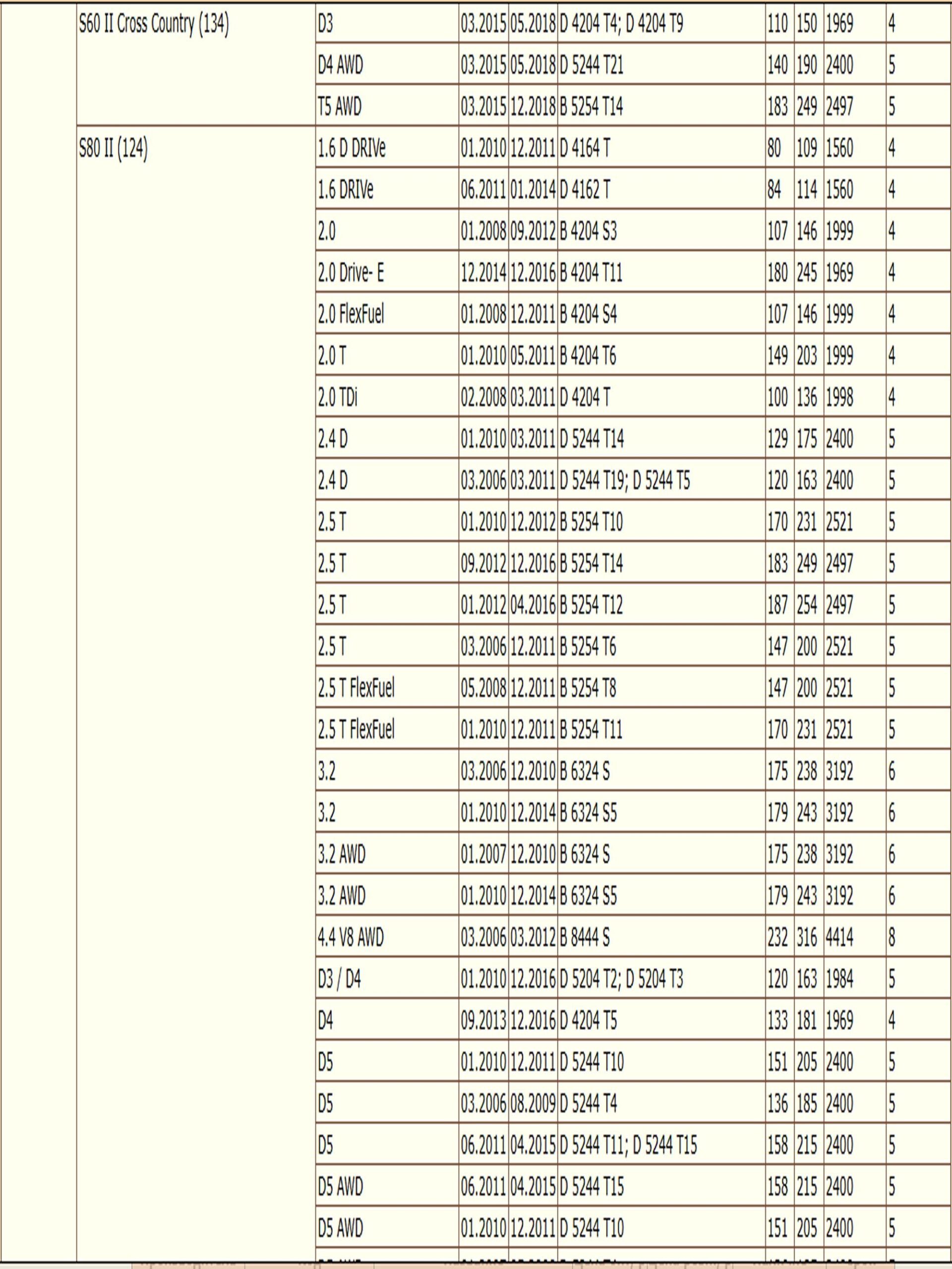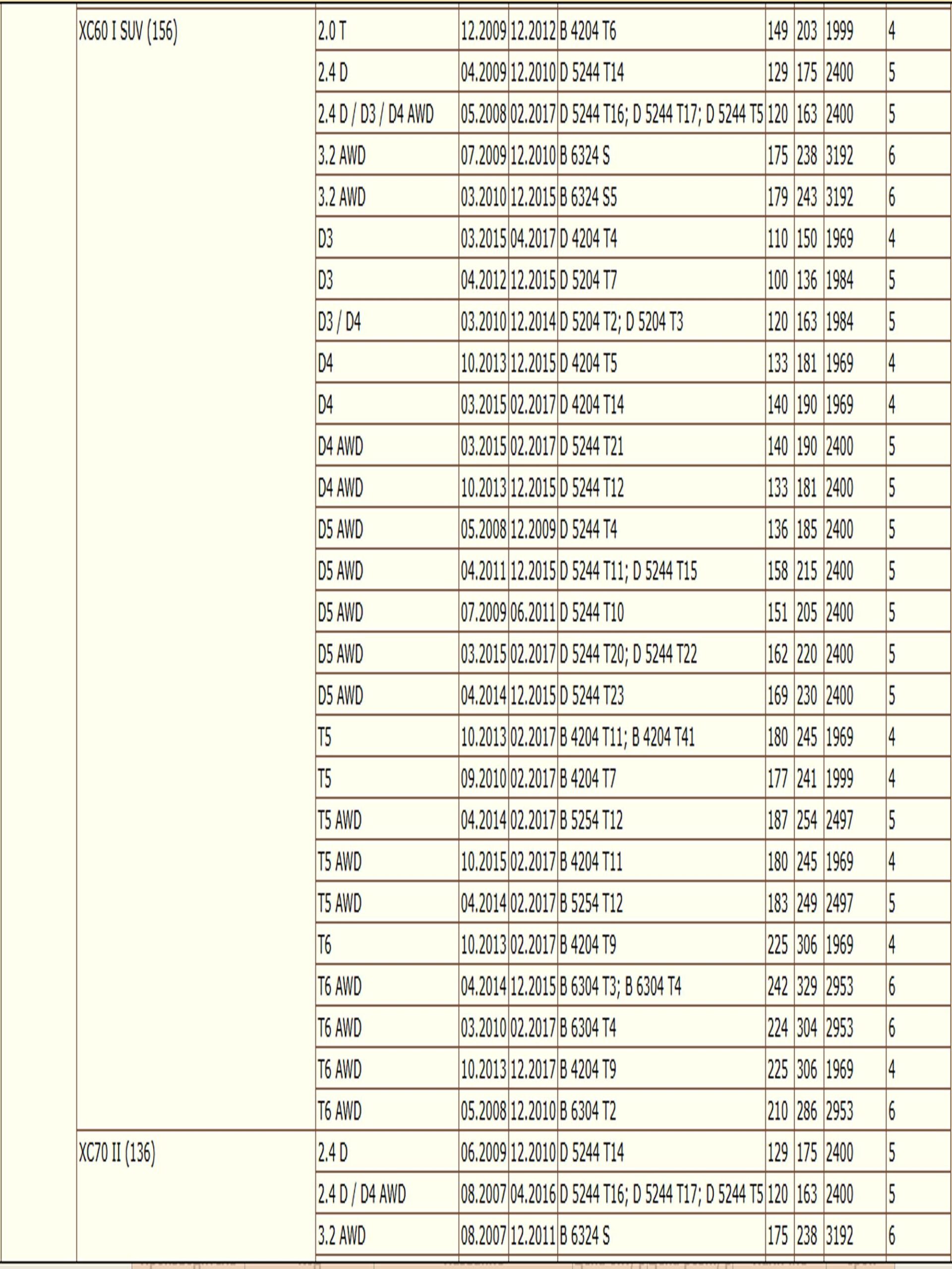 ✔VOLVO S60 II (134), S80 II (124), V60 I (155), V70 II (285), V70 III (135), XC60 I SUV (156), XC70 II (136)
