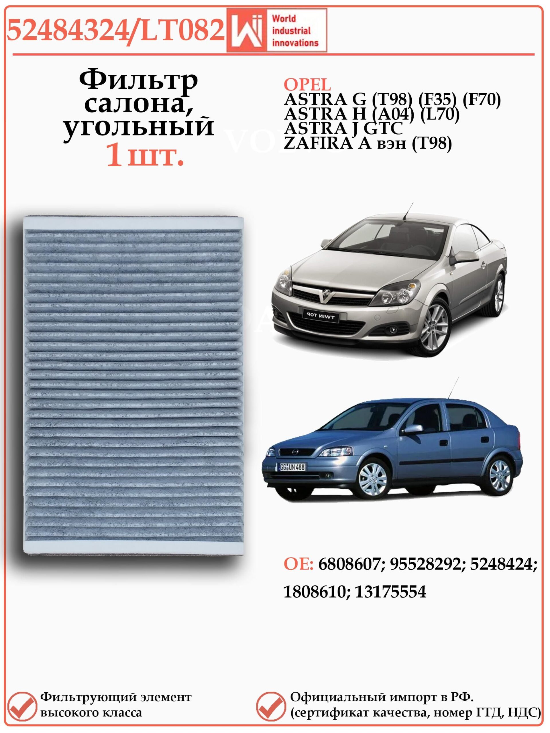 Салонный угольный фильтр для Опель Астра G, H WII AUTO 52484324/LT082