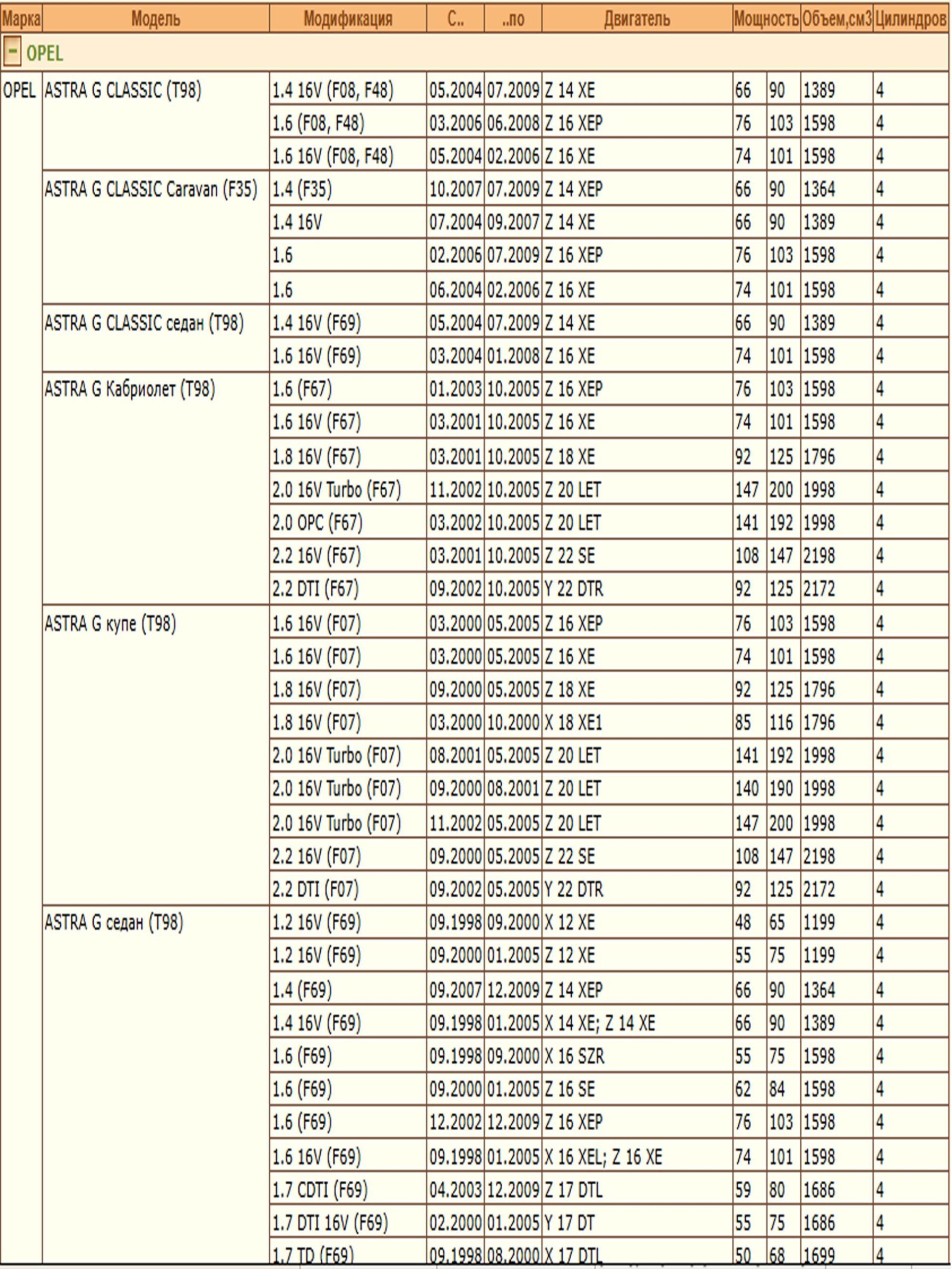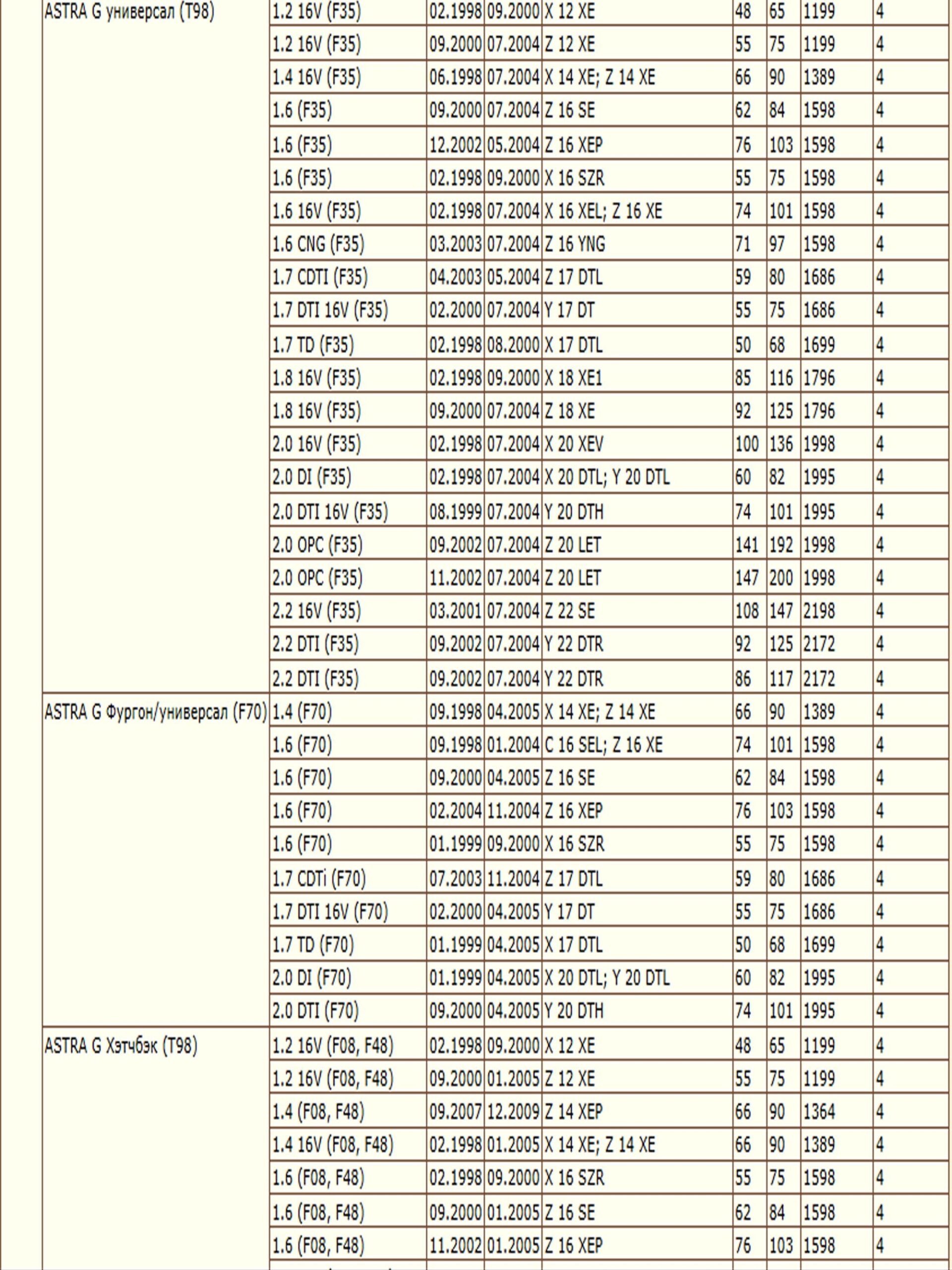 ✔OPEL ASTRA G (T98) (F35) (F70)