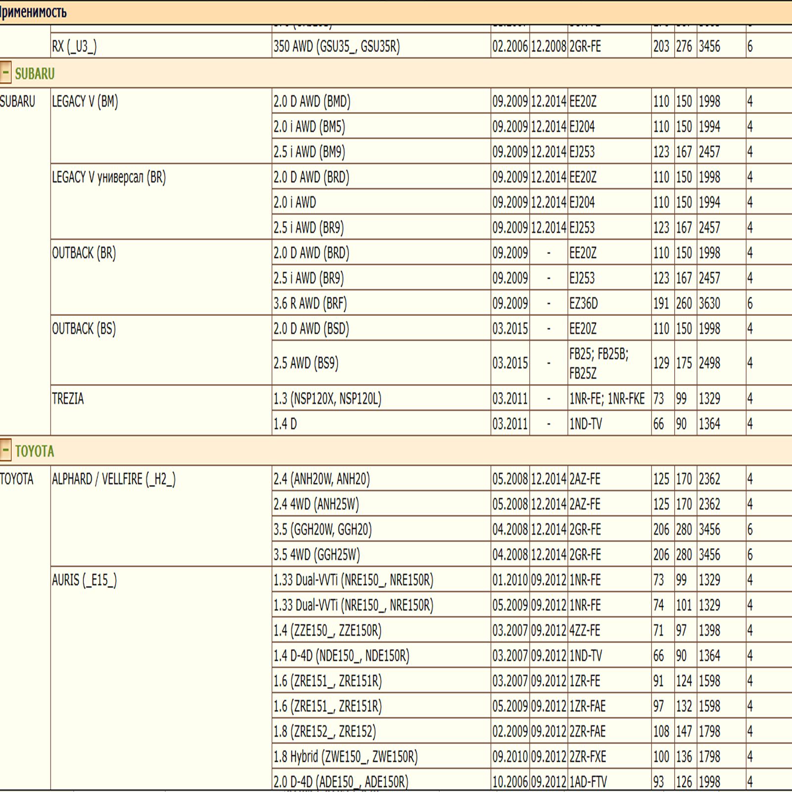 ✔ SUBARU   OUTBACK (BR) (BS)