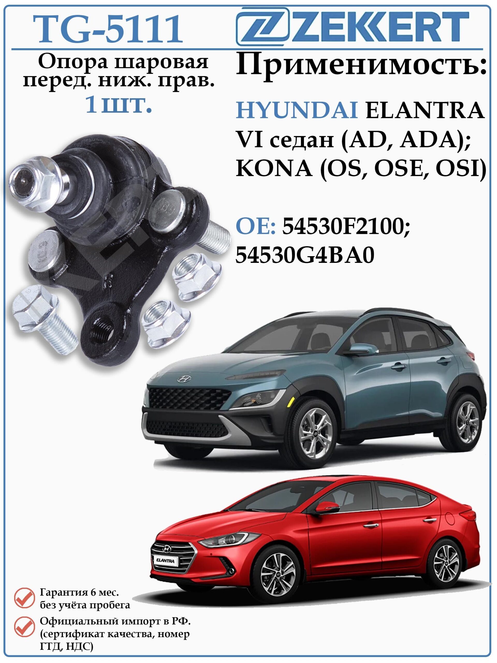 Шаровая опора правая для Хендай Элантра, Кона ZEKKERT TG-5111