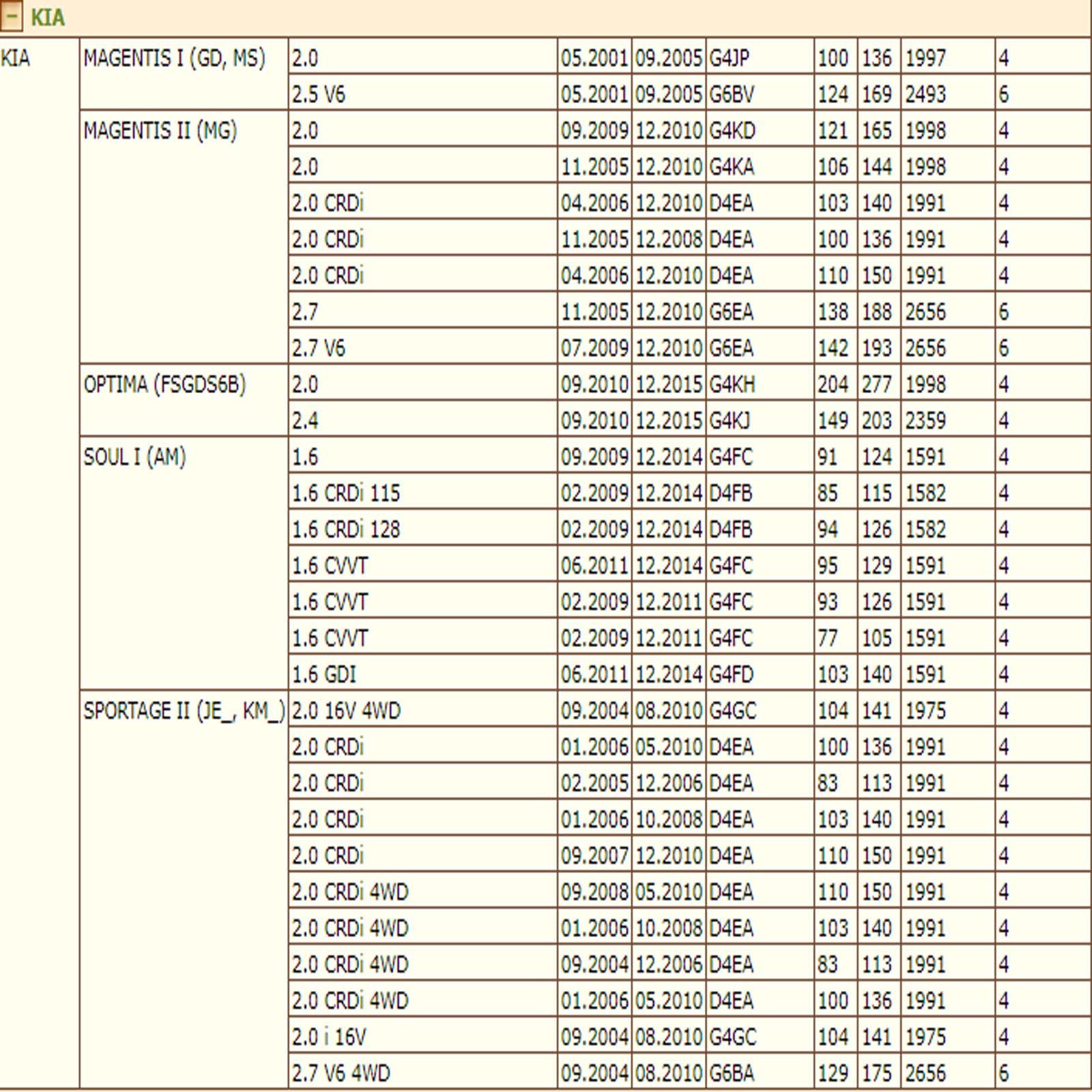 ✔ KIA MAGENTIS I (GD, MS)