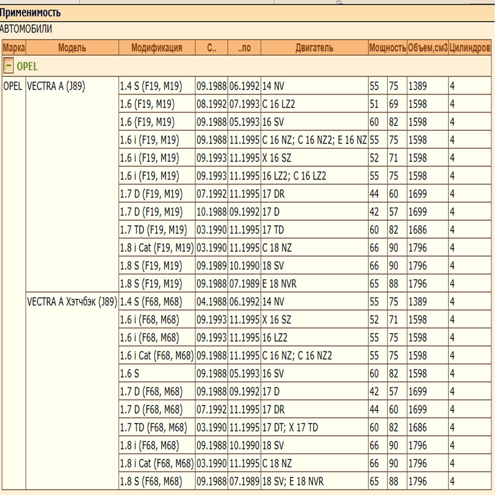 ✔ OPEL VECTRA A Хэтчбэк (J89)