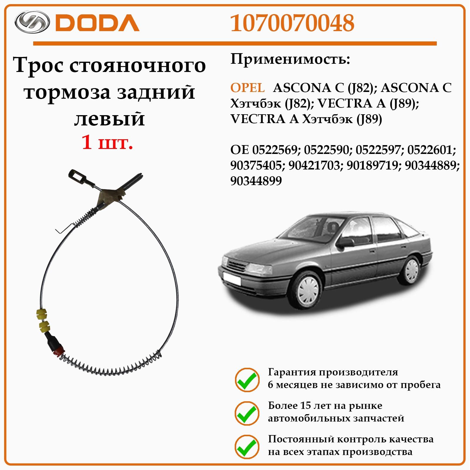 Трос. стояночная тормозная система DODA 1170010050 предназначен для автомобилей Опел. Этот надежный и качественный авто компонент поможет вам восстановить функциональность стояночного тормоза, обеспечивая безопасность на дороге.