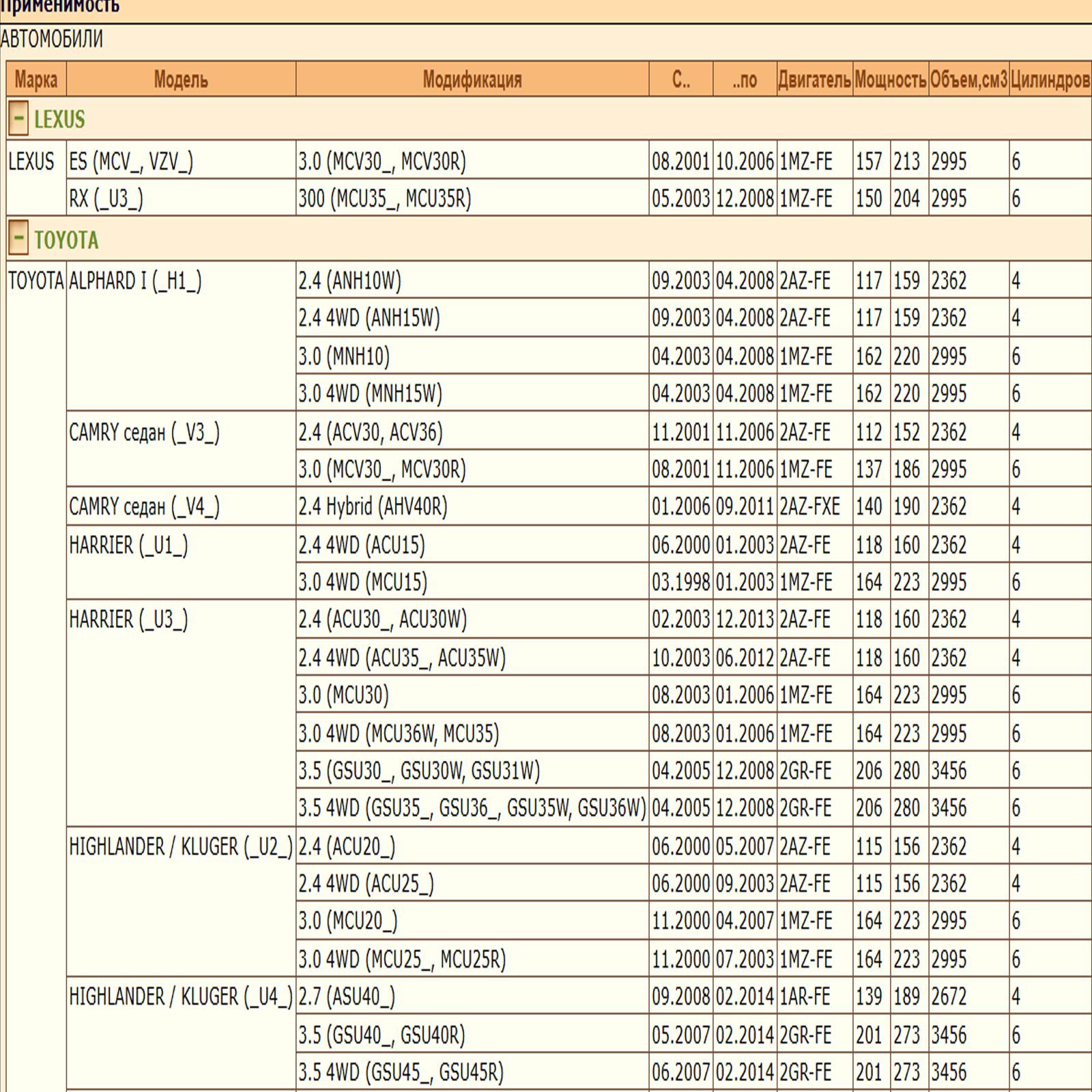 ОЕ: 17801-20040; 17801-0H020; 17801-0H010; 17801-01H10; 178010H020